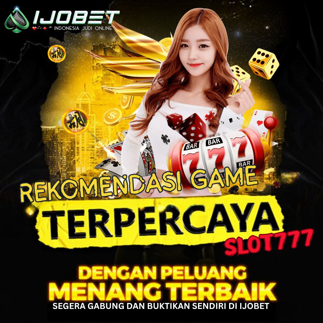 promosi Slot777 Gacor IJOBET menampilkan logo resmi IJOBET dipadukan dengan desain mesin slot klasik bertema angka 777 berwarna merah, koin emas, dan simbol buah khas permainan slot. Latar belakang berwarna hangat dengan efek cahaya menciptakan kesan dinamis, menonjolkan tema slot online gacor dengan peluang jackpot besar yang bisa dimainkan melalui platform IJOBET.